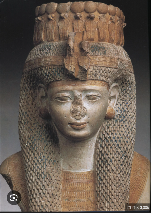 EGYPTIAN QUEEN NEFERTARI offering nu pots to Isis, Queen of Heaven. Isis holds wasankh symbol of life and fertility (meta: love, djed stability power, three-fold flame, triad). Inscription behind Nefertari hqt ruler Queen djt Eternal. Salvation Stability Life. All joy surrounding. Like Re light forever. Bearing two gifts - water and wine/beer? Sins not done and Virtues accomplished. Master of 2 lands, duality, BALANCE