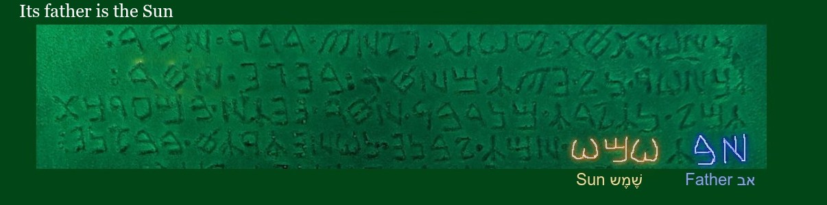 Verum sine mendacio, certum, et verissimum. Quod est inferius, est sicut quod est superius. Et quod est superius, est sicut quod est inferius, ad perpetranda miracula rei unius. Et sicut res omnes fuerunt ab uno, meditatione [sic] unius, sic omnes res natae ab hac una re, adaptatione. Pater eius est Sol, mater eius est Luna. Portavit illud ventus in ventre suo. Nutrix eius terra est. Pater omnis telesmitotius mundi est hic. Vis eius integra est, si versa fuerit in terram. Separabis terram ab igne, subtile ab spisso, suaviter cum magno ingenio. Ascendit a terra in coelum, iterumque descendit in terram, et recipit vim superiorum et inferiorum. Sic habebis gloriam totius mundi. Ideo fugiet a te omnis obscuritas. Haec est totius fortitudinis fortitudo fortis, quia vincet omnem rem subtilem, omnemque solidam penetrabit. Sic mundus creatus est. Hinc erunt adaptationes mirabiles, quarum modus hic est. Itaque vocatus sum Hermes Trismegistus, habens tres partes philosophiae totius mundi. Completum est, quod dixi de operatione Solis.